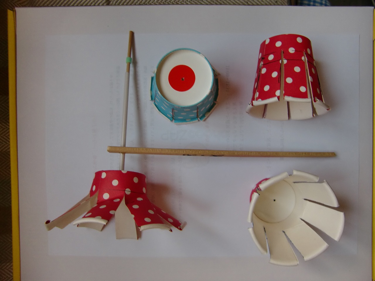 9:30 10:30・・・「紙コップ風車」を作りました。