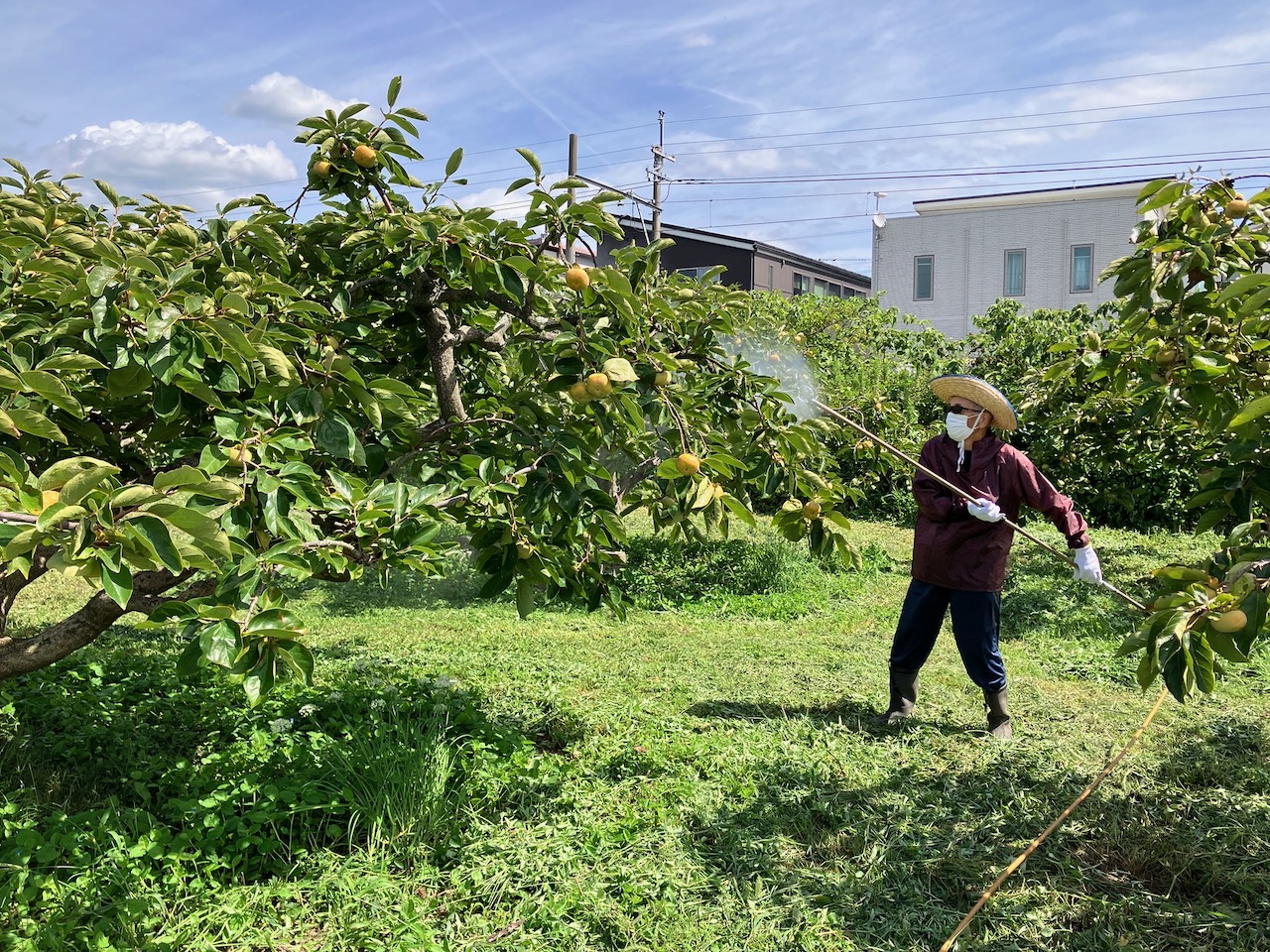 猛暑のせいか、恐怖のカメムシ被害も今のところ見られない平和な柿園。