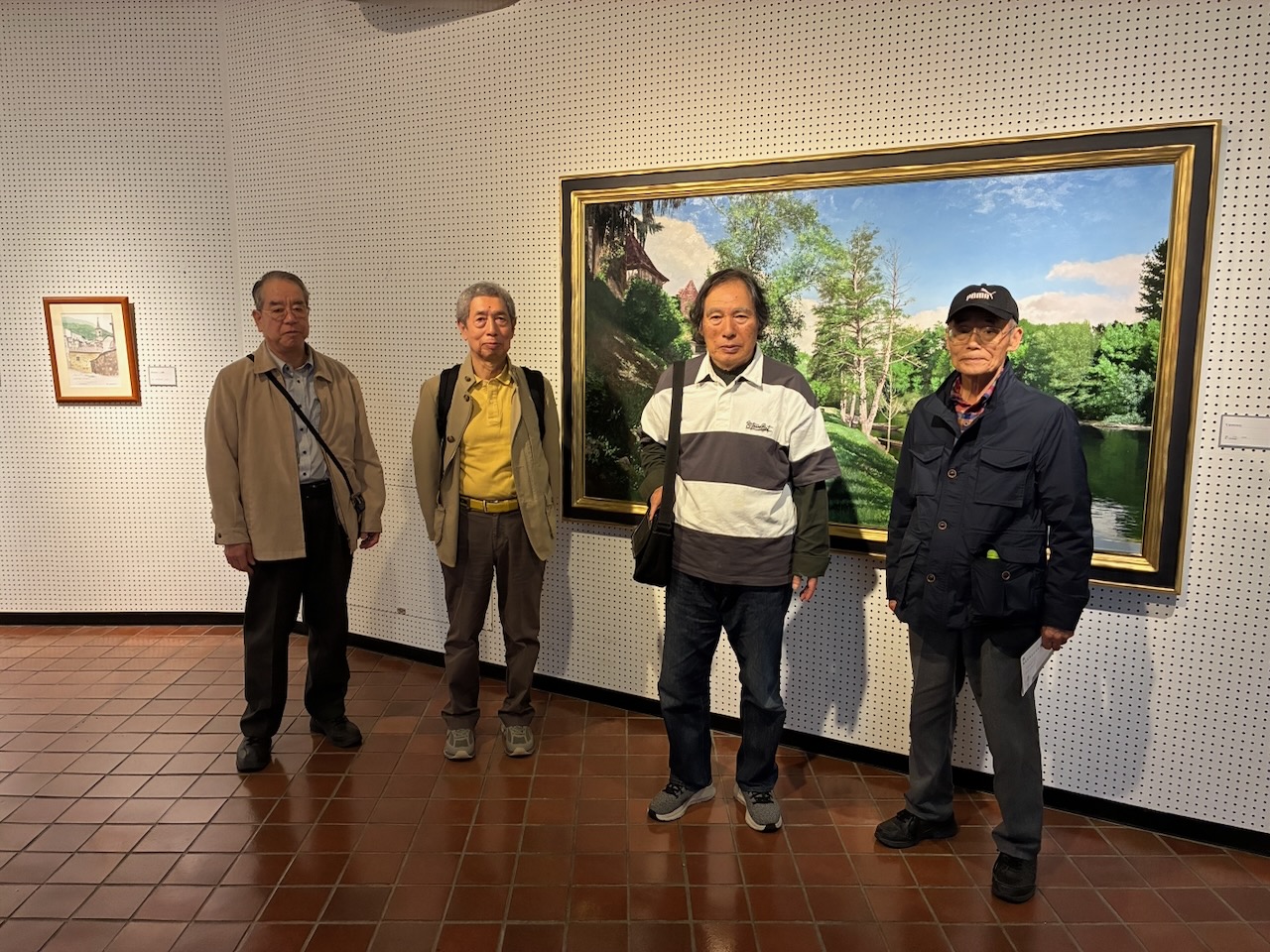 西房浩二の絵の前で記念撮影